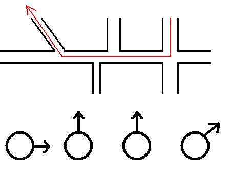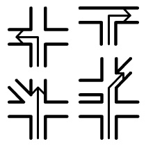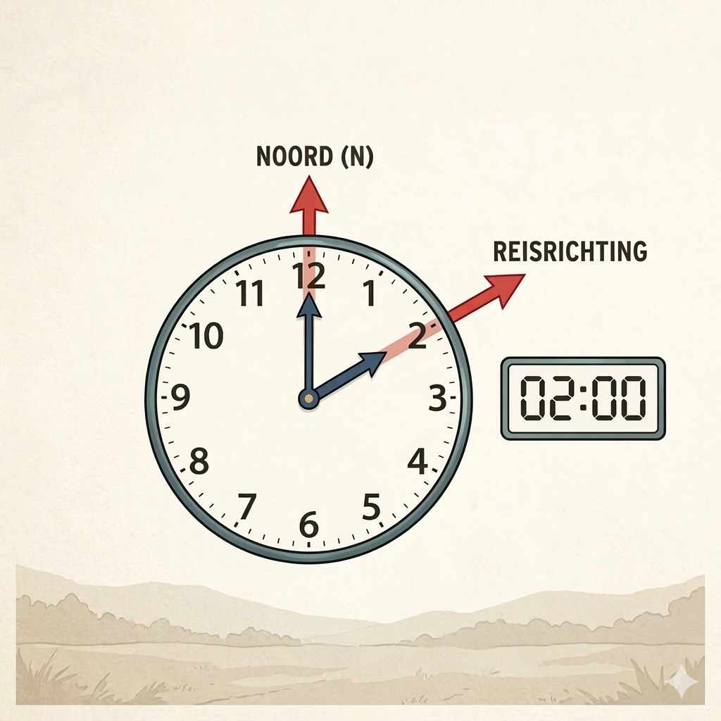 Alternatief kan de kleine wijzer voor de huidige weg staan, van waar onder een hoek weggelopen moet worden.