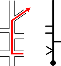 Deze techniek is goed te gebruiken voor niet gevorderde gebruikers. Hij is gemakkelijker dan bijvoorbeeld een bolletje-pijltje en een stripkaartroute, omdat bij deze technieken de situatie van afslagen minder duidelijk is weergegeven.