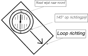 Je gebruikt je kompas om een punt in de verte te bepalen op basis van een graadgetal en loopt daar in een rechte lijn naartoe.