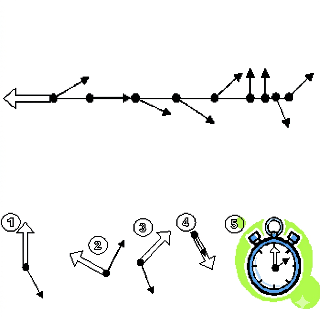 - Draaiende noordpijl: Per kruispunt krijg je een nieuwe combinatie van een noordpijl en een richtingpijl, vergelijkbaar met de ‘bolletje-pijltje’ techniek.